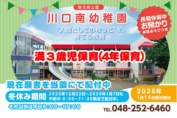 2026/1/14(水) 9:00~「満3歳児保育(4年保育)」受付開始!